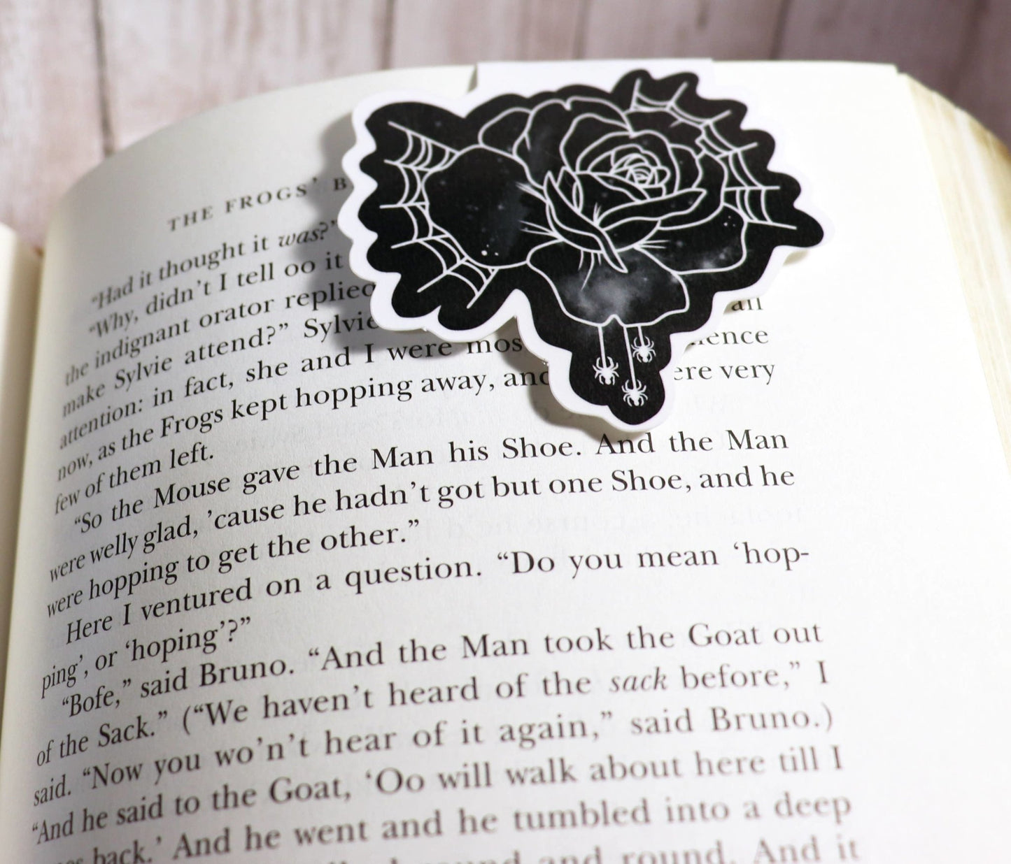 This witchy bookmark is approximately 2.5 inches wide by 2.5 inches tall.